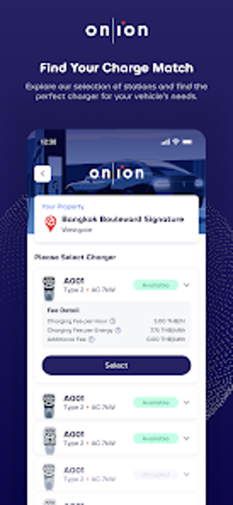 بالإضافة إلى هذه الميزات، يتيح تطبيق شاحن Onion EV للمستخدمين مراقبة جلسات الشحن الخاصة بهم والتحقق من حالة شواحنهم بسهولة. مع خيارات الدفع عبر الإنترنت، تصبح عملية شحن المركبة الكهربائية أكثر سلاسة. والأهم من ذلك، أن التطبيق يعزز استخدام الطاقة النظيفة، حيث يتم توفير جميع الطاقة في محطات الشحن on-ion من مصادر طاقة متجددة بنسبة 100% تُنتج في تايلاند، مما يساهم في ممارسات السفر المستدامة.